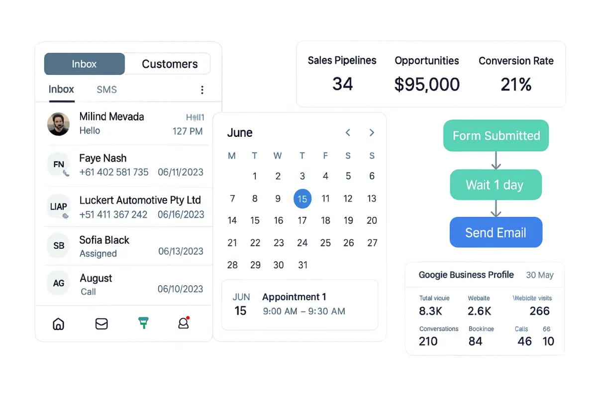 With built-in forms, funnels, booking pages, reviews, and instant follow-ups, you turn interest into real conversations and paying customers.